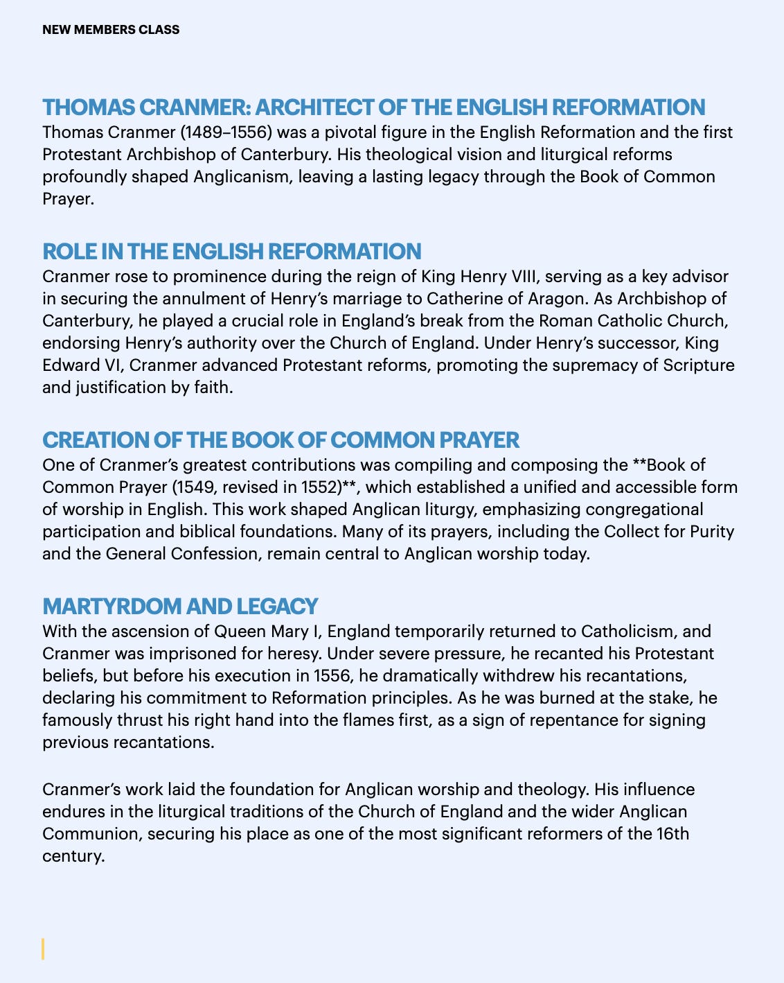 A handout on Thomas Cranmer’s contributions to the Reformation
